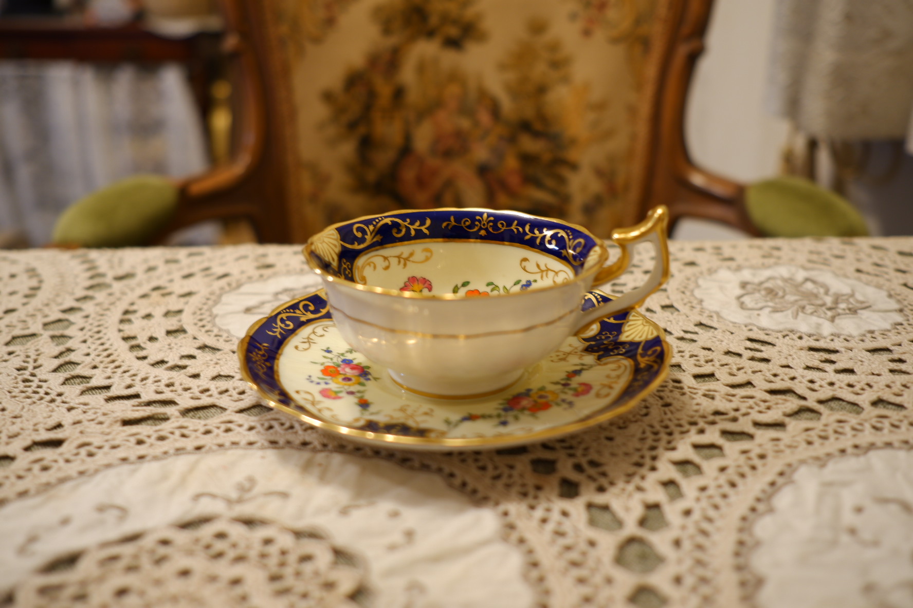 アンティーク寄りのカップが好きで、気に入ったデザインのものを少しずつ集めています。 デザインに惹かれて気づいたらコウルドン窯のものが増えていました。